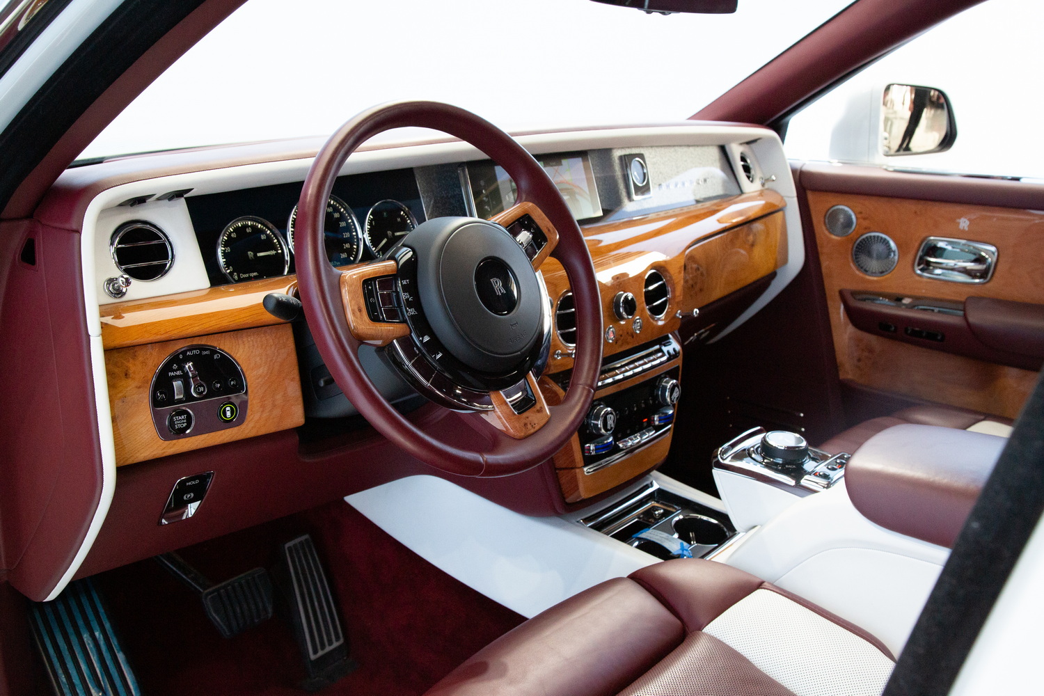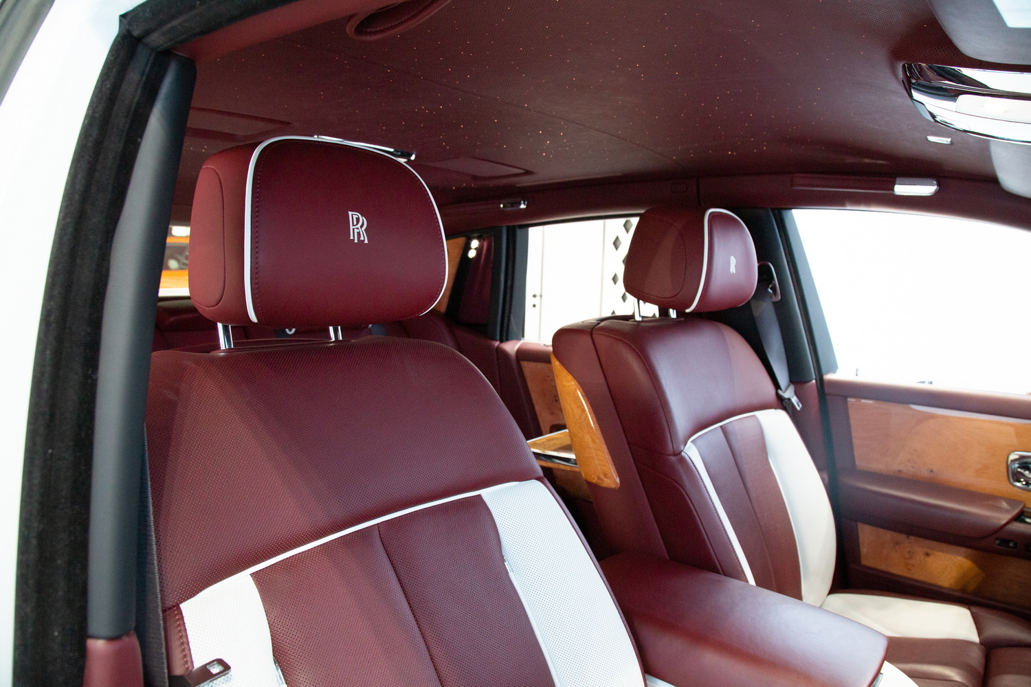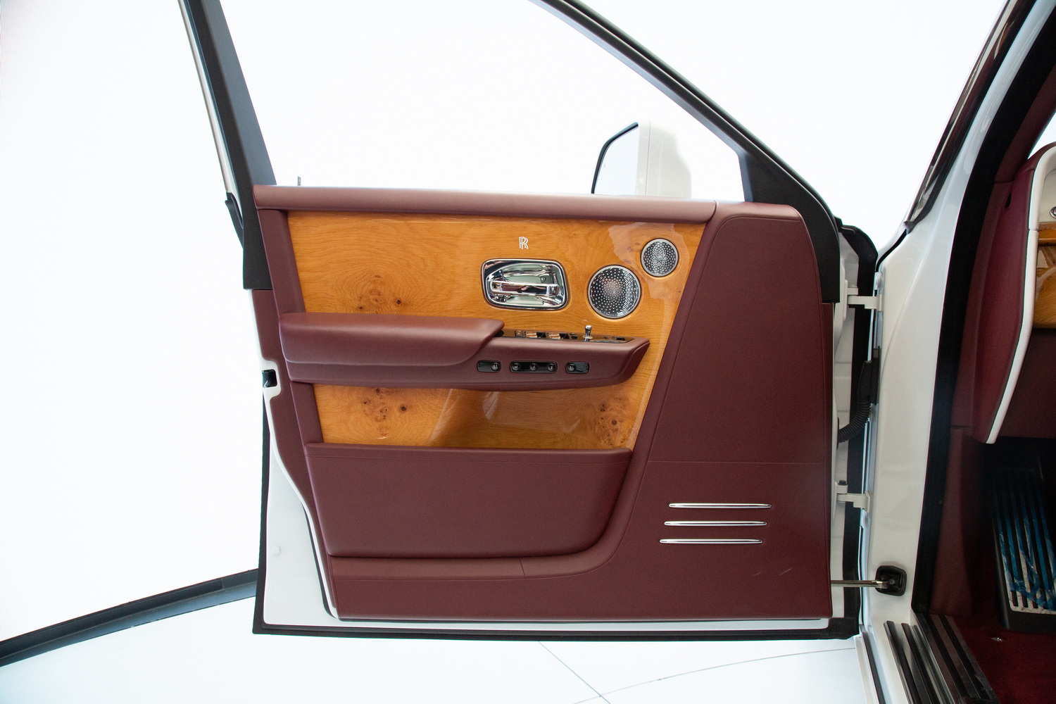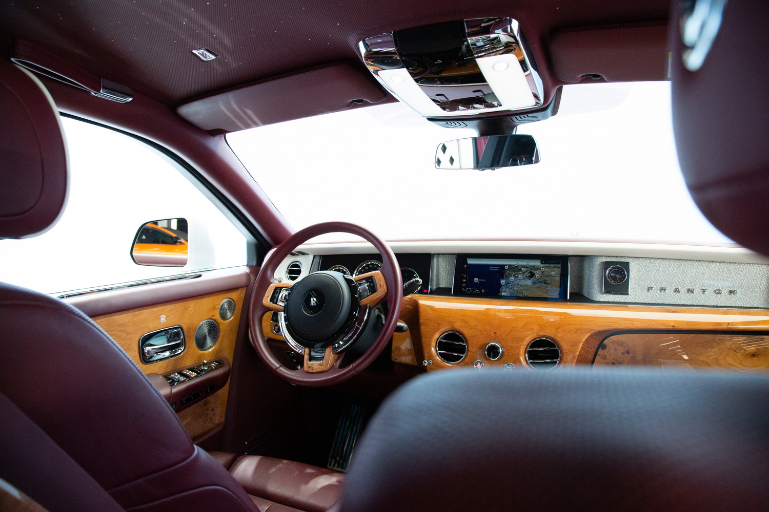 Step inside the lavish interior, where opulence takes on new meaning with a two-tone red and white palette. Bespoke audio envelops you in a symphony of sound, while the rich wooden trim adds warmth and texture to the surroundings. Privacy curtains ensure that every moment within the Phantom is a private sanctuary, far removed from the outside world.