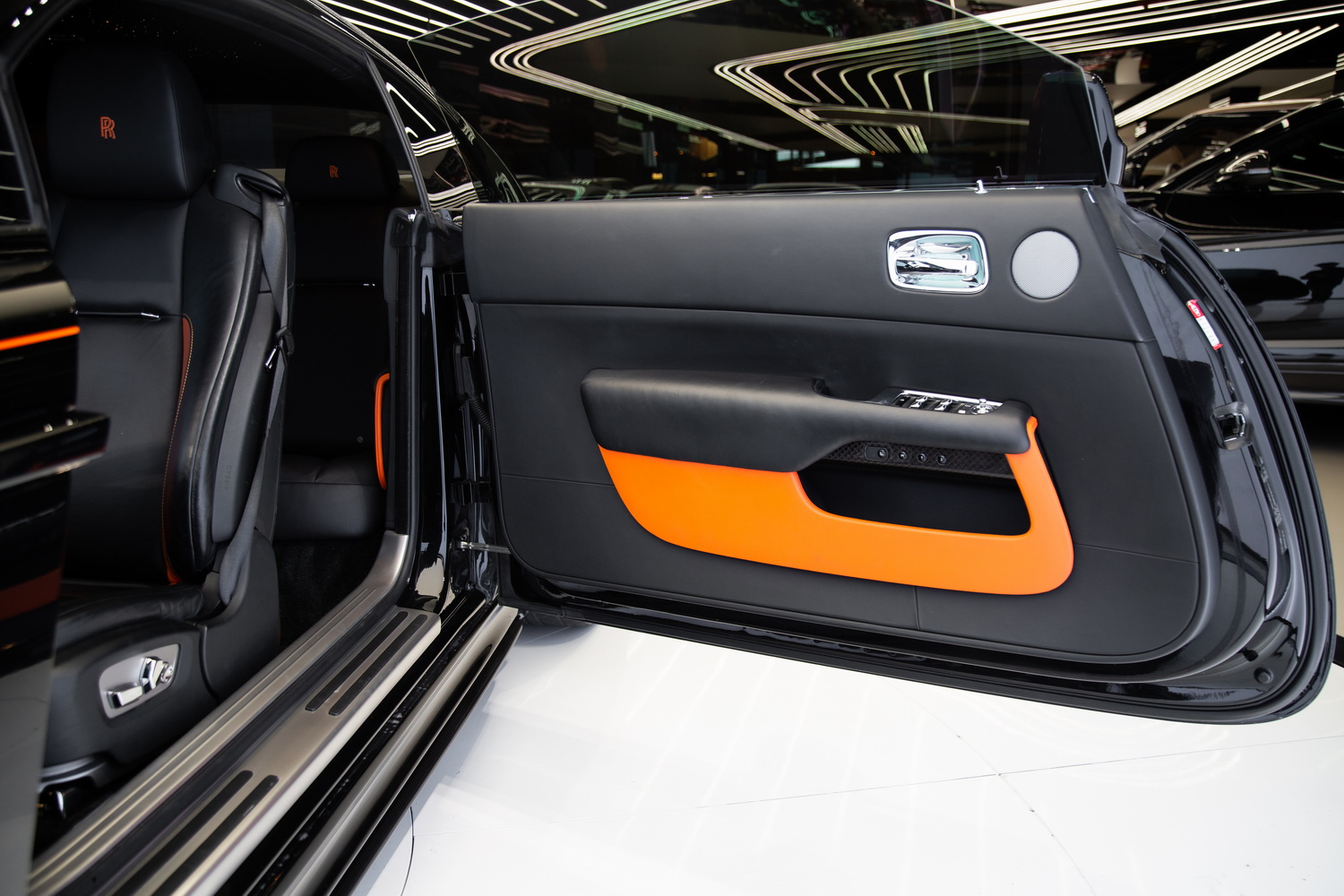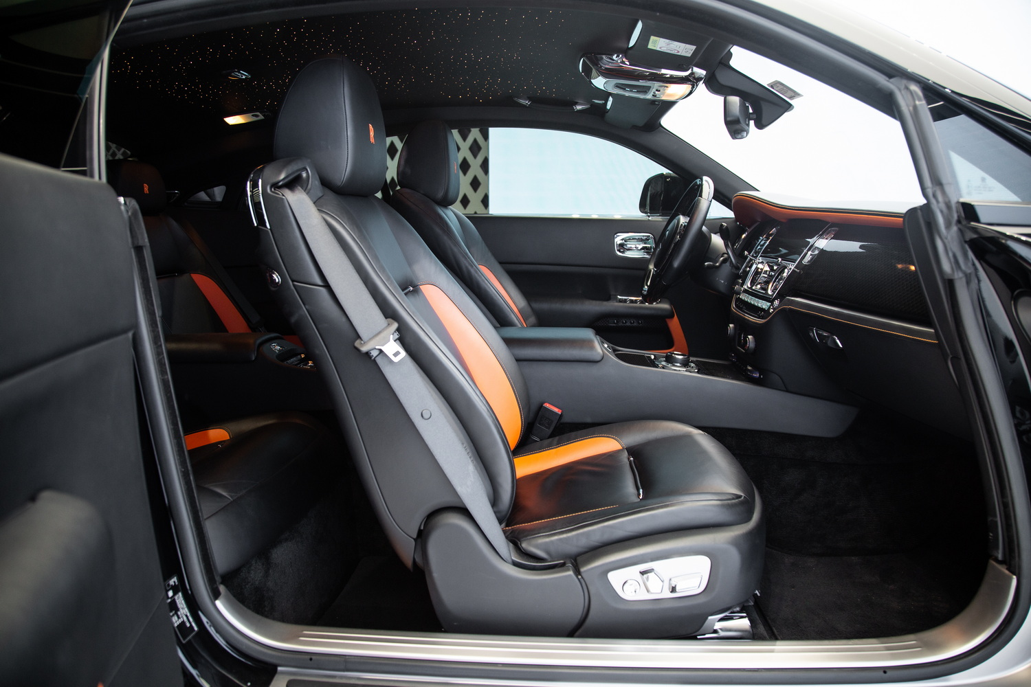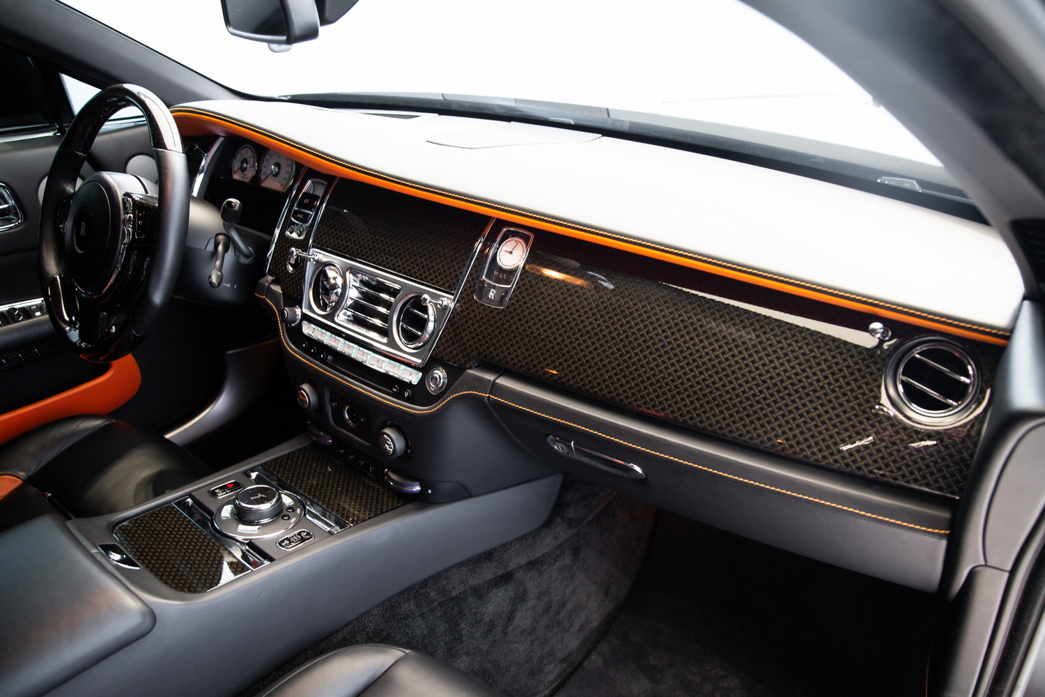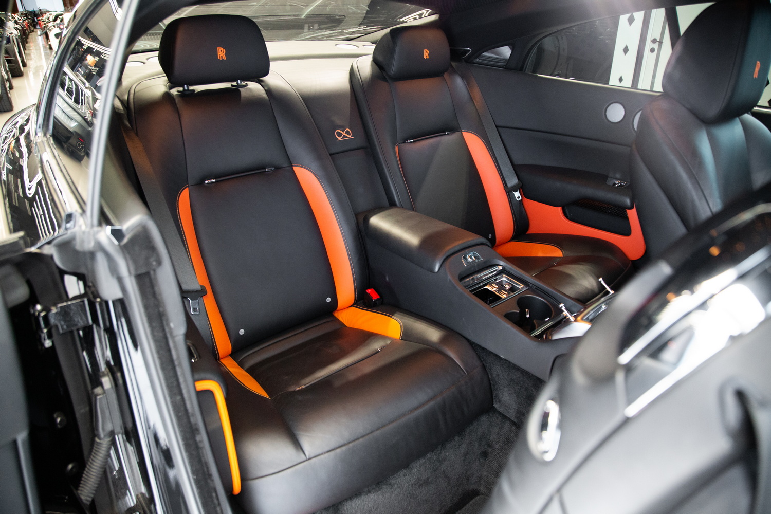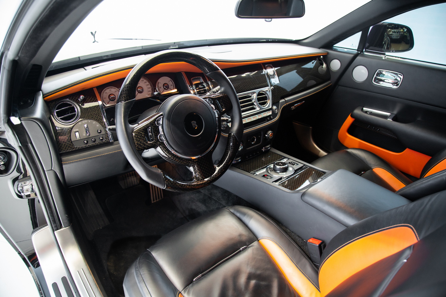 This particular Wraith Onyx Edition's used status means it comes to you with very few miles on the clock, offering the unique opportunity to own a piece of Rolls-Royce's storied legacy with the added exclusivity of the Onyx Edition. The black and orange interior not only adds to the visual appeal but also underscores Rolls-Royce's commitment to bespoke luxury, with high-quality materials and meticulous attention to detail that reflect the brand's unparalleled standards.